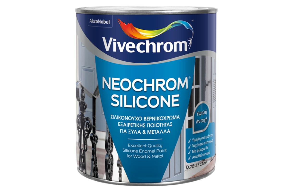 Το Neochrom, ένα από τα πιο ιστορικά προϊόντα της Vivechrom που έχει κερδίσει την εμπιστοσύνη της ελληνικής αγοράς για περισσότερο από 80 χρόνια, αναβαθμίζεται σε Neochrom Silicone. Η νέα σύνθεσή του με προσθήκη σιλικόνης, δημιουργεί ένα ιδιαίτερα σκληρό, ταχυστέγνωτο και ταυτόχρονα ελαστικό γυαλιστερό φιλμ με μεγάλες αντοχές, προσφέροντας ισχυρή προστασία και ένα τέλειο διακοσμητικό φινίρισμα.